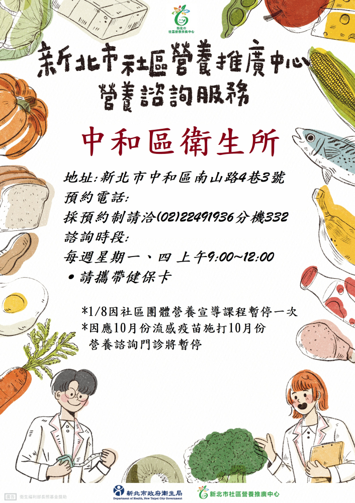 •諮詢地點: 中和區衛生所(新北市中和區南山路4巷3號)